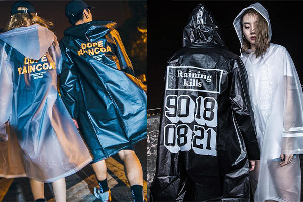 這是滿常見的一款,但同時(shí)也是最具風(fēng)格性的。在普通的穿搭,只要套上透明雨衣式的沖鋒衣,都可以化腐朽為神奇!利用內(nèi)搭上衣來避免撞衣的窘境,如圖左整套式的透明搭配,以頭跟腳的黑色配件來強(qiáng)化對(duì)比;圖右則是在亮橘色的衛(wèi)衣外,罩上透明黑邊的沖鋒衣,點(diǎn)亮了原本較單調(diào)的穿搭;圖中的下身選擇簡單的五分短褲,加以凸顯上半身的半透明沖鋒衣之特色。