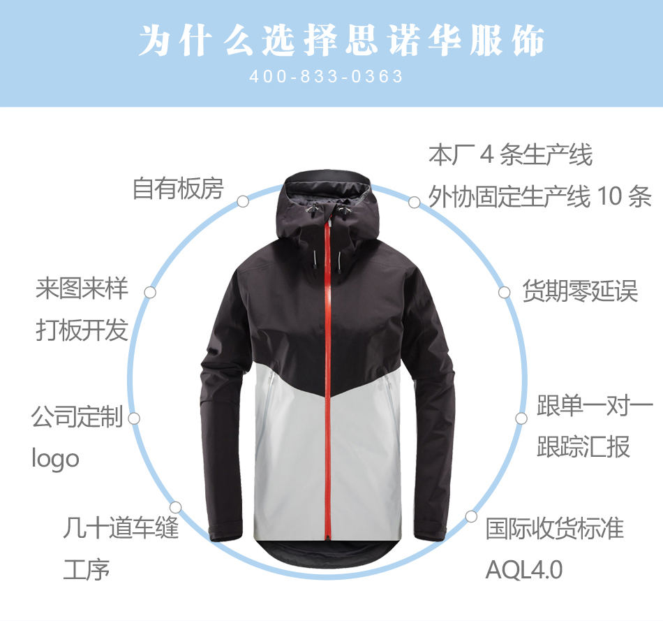 睿牛戶外服飾—沖鋒衣加工廠家來(lái)圖來(lái)料單層沖鋒衣加工
